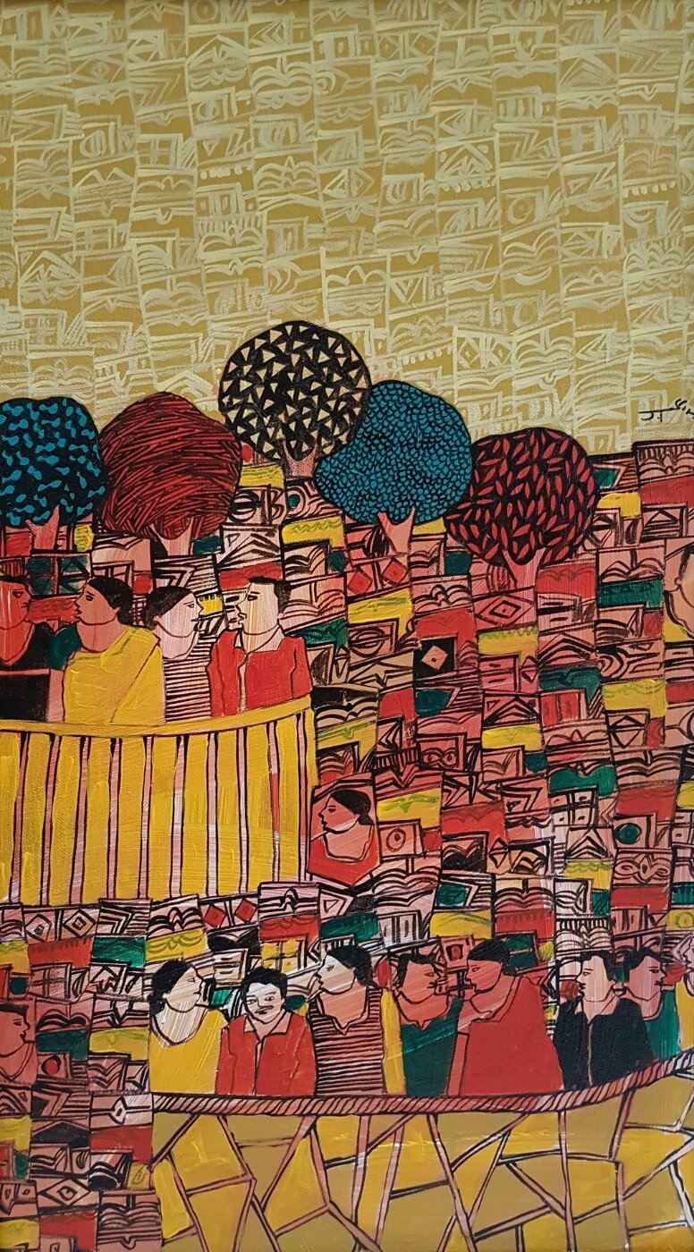 Artist main area of interest is capturing the beauty of cutyscape. Its people, trees, land, houses are very minutely depicted on canvas with work involving doodling, detaied fills and designs